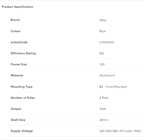 الکتروموتور سه فاز وگ weg با 4 اسب بخار از سری محصولات برزیل است. این موتور الکتریکی دارای یک موتور 3 کیلوواتی است و بدنه آن از آلومینیوم ساخته شده است.