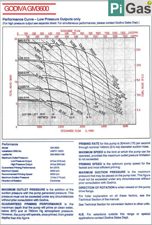 | مدل: GM3600 | فشار خروجی: Low Pressure Output تا 22 bar، High Pressure Output تا 45 bar | حداکثر فشار مکش: 12 bar |