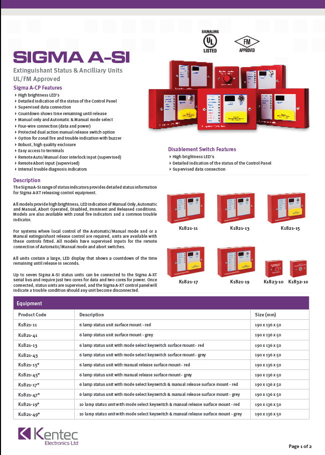 شستی اطفا حریق KENTEKمحصول کشور انگلستان است و این برند سالهاست در زمینه تولید تجهیزات اعلام حریق تجربه دارد. در جدول زیر به بررسی مشخصات فنی شاسی اطفا حریق KENTEK خواهیم پرداخت.